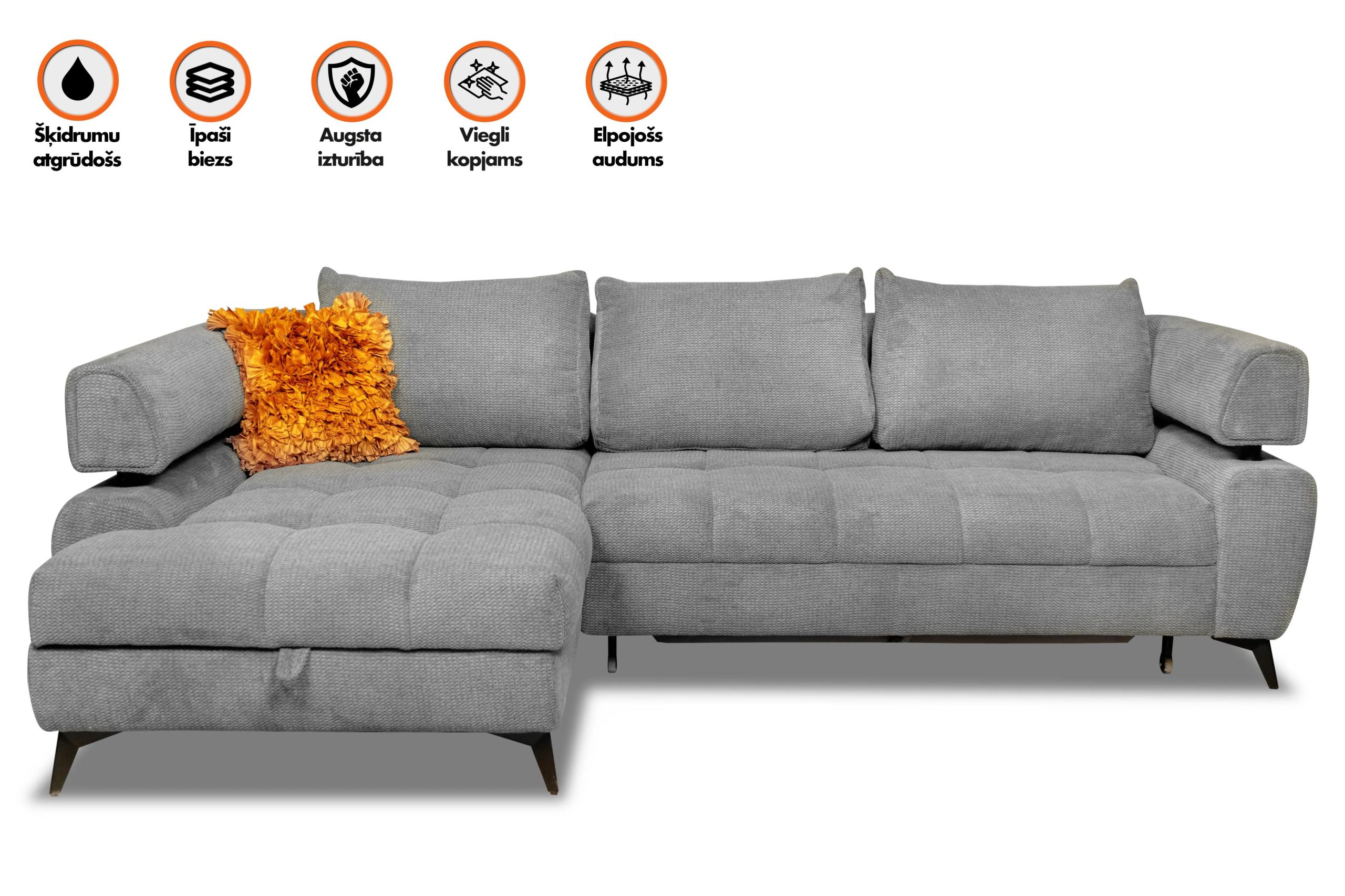 - Ekskluzīvs premium klases buklē audums ar iestrādātu “SMART” tehnoloģiju – apvieno greznu izskatu ar ikdienas funkcionalitāti.