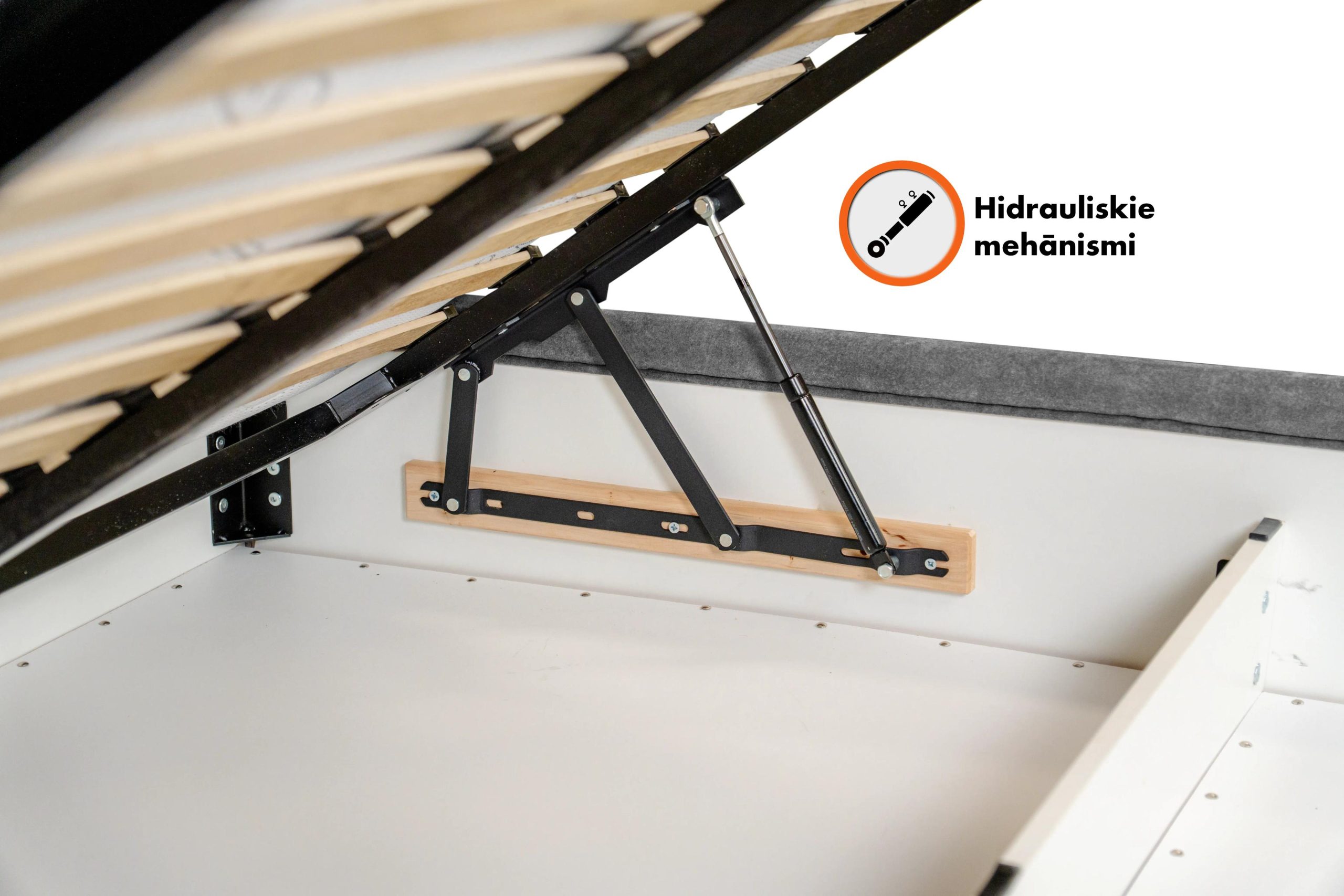 - Бельевой ящик открывается с помощью гидравлических механизмов, что делает его подъём легче.