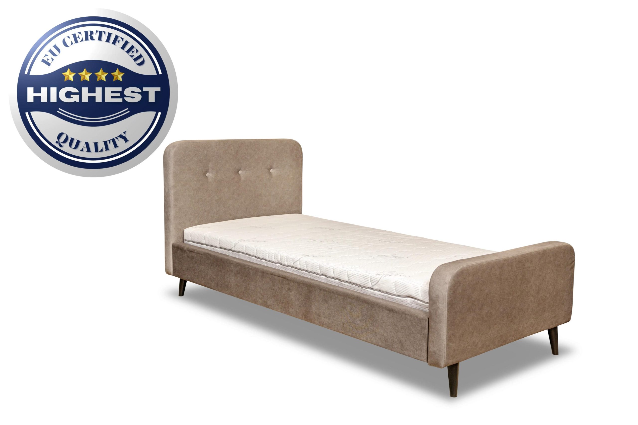 - Изголовье и боковые части кровати обиты качественными мебельными пенами, обеспечивая дополнительный комфорт и безопасность.